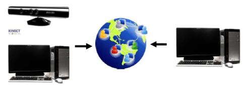 Thanks to the features of the Tuio protocol, it has been implemented a client-server system for the transmission of the skeleton data kinect “real time”. The results have been excellent opening new scenarios for the TUIO protocol use.The data transmission is fast and efficiently, the protocol TUIO is redundant and provides reliability