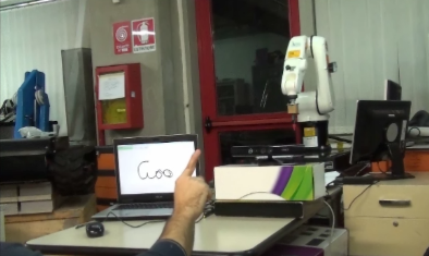 The project aim is to make a robotic arm easy to use with the kinect. This system provides a simple front end that hides the complexity in the programming of a robotic arm. It’s a system that can work with existing applications, but provides new usage scenarios. If the user lifts only a finger, any kind of events can be generated. For example , drawing or marking specific paths to be tracked can be easily done just by moving the index finger in the space. The Kinect Power!